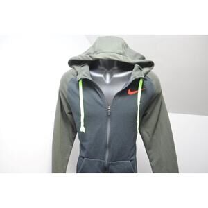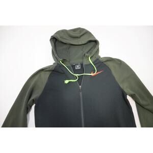 Nike Hoodie Jacket Athletic Dri Fit Black Green Full Zip Mens Size Medium