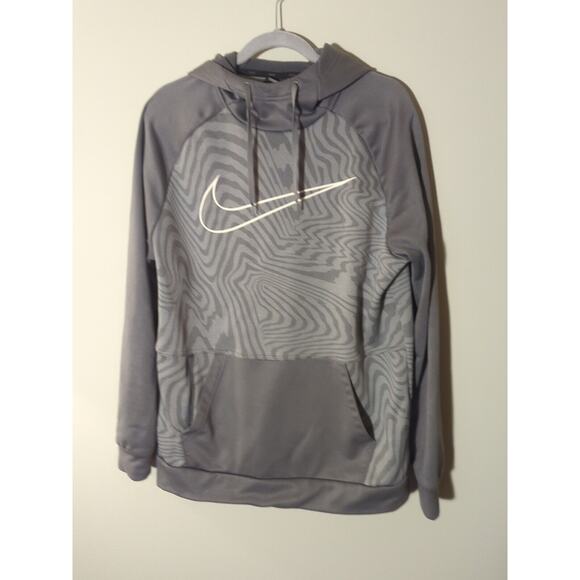 Nike Hoodie Men Med Gray Zebra Striped Dri Fit Center Swoosh Pullover Sweatshirt