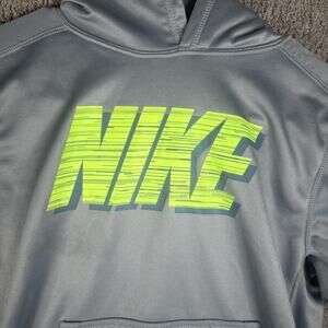 Nike Hoodie Mens Large Gray Therma-Fit Pullover Sweatshirt Neon Yellow Logo Athletic