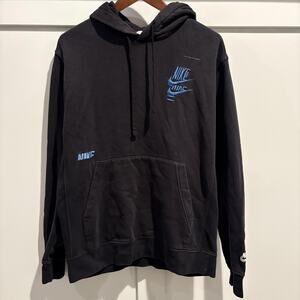 Nike Hoodie Mens Small Black Blue Swoosh Logo DM6873-010 Embroidered Pullover