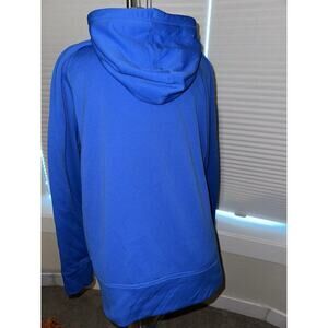 Elevate your activewear game with this Nike pullover hoodie for men in XL size. The blue and orange color scheme with a solid pattern and logo accents make it a stylish addition to your wardrobe. The hoodie features a long sleeve design with a hood and is made of polyester material, making it perfect for all seasons, including winter, summer, fall, and spring.