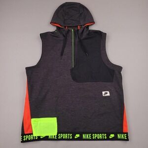 Nike Hoodie Mens XL Gray Black Sleeveless Sport Clash Dri-FIT Half Zip