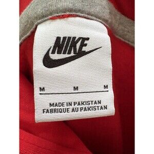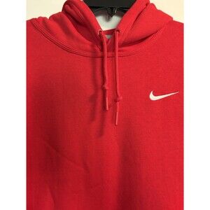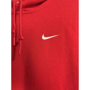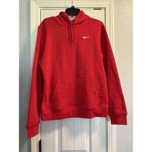 Nike Hoodie Sweatshirt Mens Medium Red White Logo Pullover Swoosh Fleece Solid