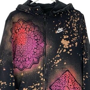Nike Hoodie Sweatshirt Zip Up Jacket Mandala Stencil