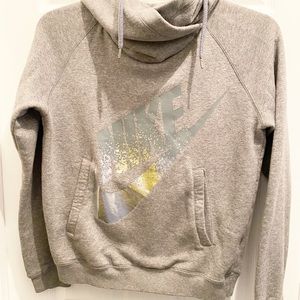 Nike Hoodie Sweatshirt With Silver Gray Spellout Medium