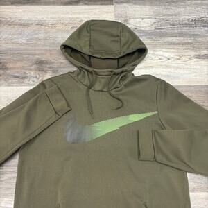 Nike Hoodie Therma Training Army Green Mens Medium Big Center Swoosh Funnel Neck Dri Fit Hoodie