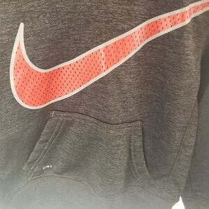 Nike Dri-Fit 2T /1-2 years toddler grey hoodie with red mesh swoosh and mesh inside hood. Kangaroo pocket and drawstring for hood. Cozy fleece interior.