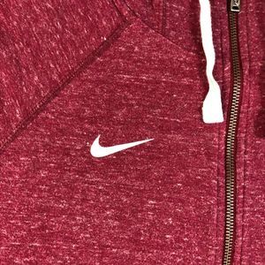 Nike Hoodie Women Medium Marron Red Full Zip Mock Neck Logo Swoosh Sweatshirt