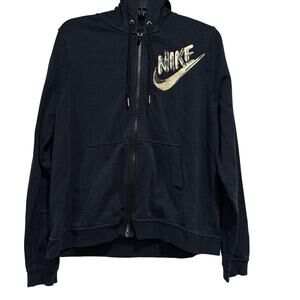 Nike Hoodie Womens Large Dark Gray Full Zip Metallic Gold Swoosh 936957-010