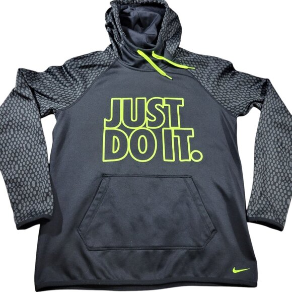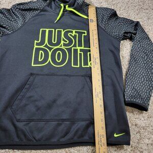 Nike Hoodie Womens Medium Black Green Logo Spellout Pullover Therma Fit