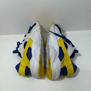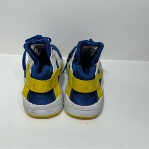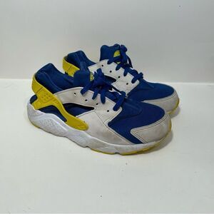 Gently worn boy’s size 3Y nike huarache blue and yellow athletic shoes. Please review all photos for any signs of wear-pictured as is. Disclaimer: Any items with any wear/staining has not been treated, and unsure of ability to remove/treat condition. Comes from a smoke free home, bundle with other items to save & minimize shipping cost.