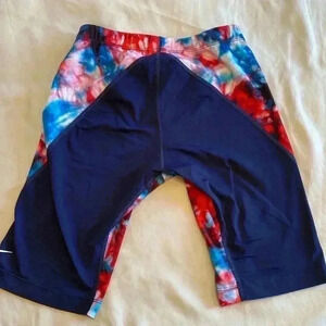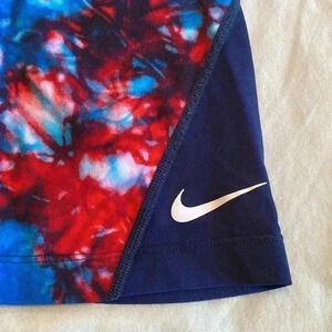 Nike Hydrastrong Woman’s Red, White & Blue Tie Dye Swim Bike Shorts Size Medium.