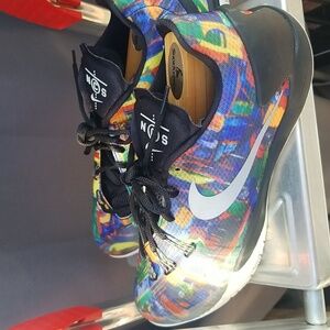 Vibrant Nike shoes with a unique design. Features a bold multicolor pattern. Perfect for sports and casual wear.