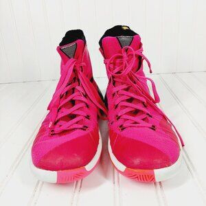 In 2008, Nike began helping raise breast cancer awareness with bold ‘Think Pink’ colorways for many of their silhouettes. This Hyperdunk 2015 'Think Pink’ continues the tradition, with its mix of Vivid Pink and Pink Pow on the Hyperfuse upper and extra thick Phylon midsole. Designed by Leo Chang, the Hyperdunk 2015 also features an extra-high protective collar, Zoom Air units in the forefoot and heel and a herringbone traction outsole.