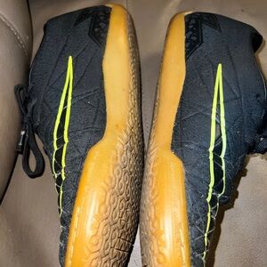 Sleek black design with vibrant yellow accents. Durable gum sole. Perfect for athletic performance.