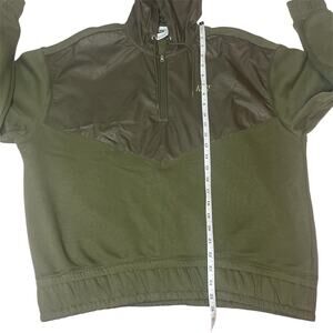 Elevate your athleisure with this Nike Icon Clash Half-Zip Hoodie in a gorgeous olive green. Features a textured windbreaker-style upper panel, fleece-lined body, and elastic hem for a comfy, slightly oversized fit. New without tags. Soft inside.