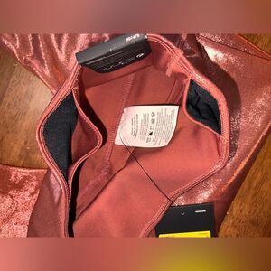 Nike Icon Clash Shimmer Leggings in Metallic Claystone, mid-rise 7/8 length with a sleek, metallic finish. Dri-Fit fabric wicks sweat and offers full squat-proof coverage with a smooth, body-hugging tight fit. New with tags, MSRP $85.