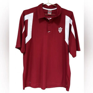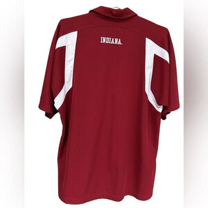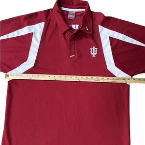 Men’s polo has IU embroidered on the left chest and Indiana embroidered across the back