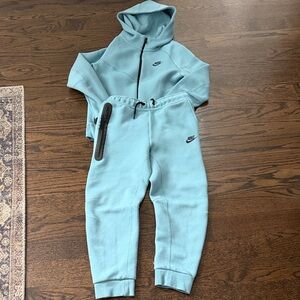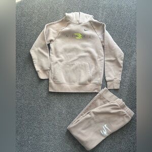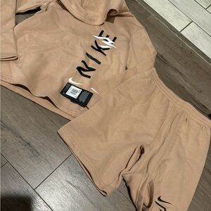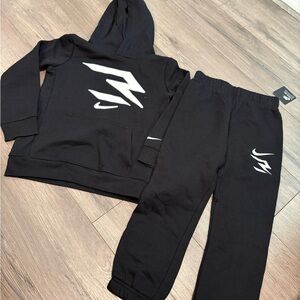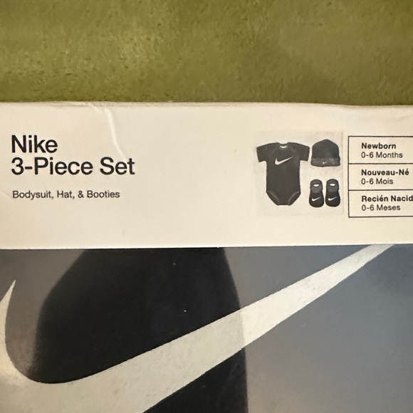 Infant set with bodysuit, hat, and booties. Features iconic Nike logo. Stylish black and white design.