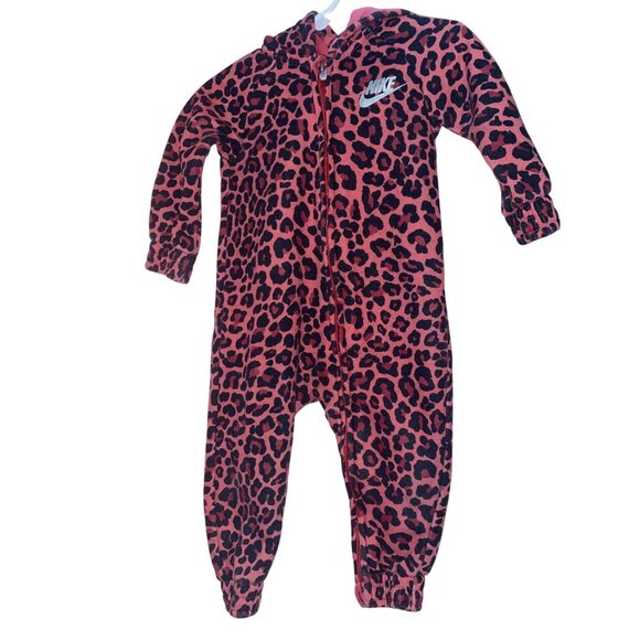 Nike Infant Girls' Leopard Full-Zip Coverall 12M Pink Black Cotton Full Zip Sn