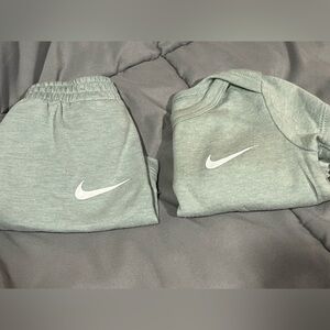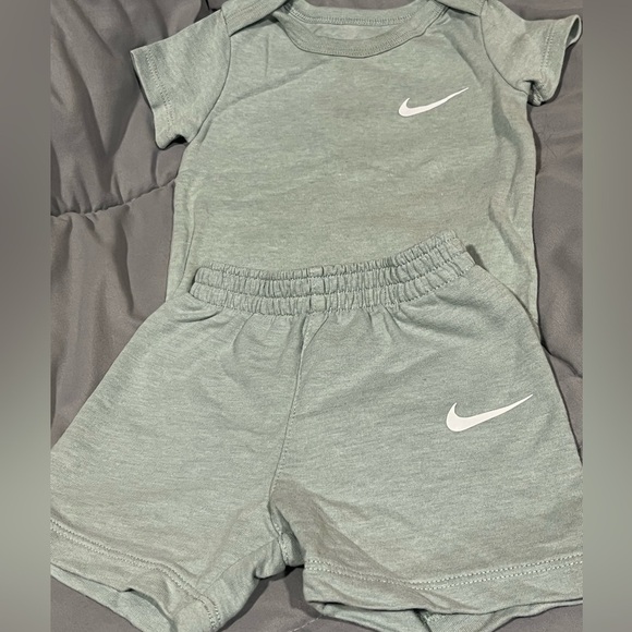 Charming Nike infant set in light green. Includes a short-sleeve top and matching shorts. Features Nike logo.