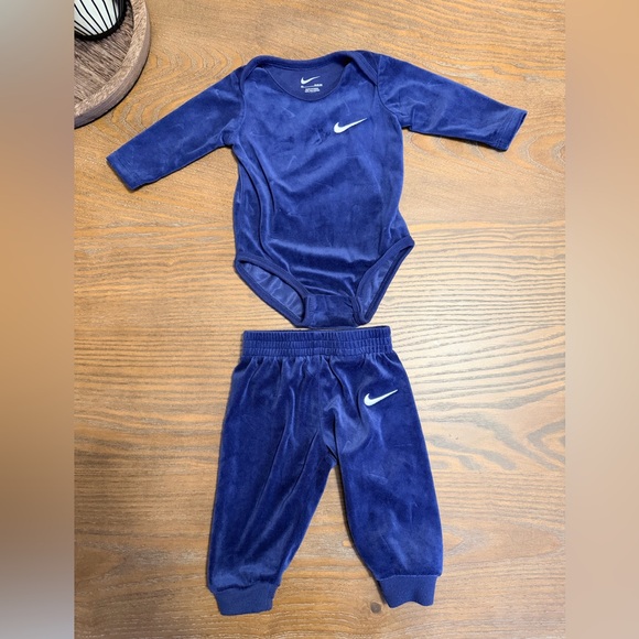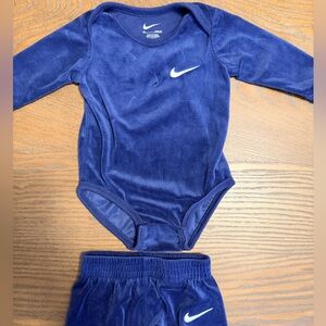 Charming Nike velour set with bodysuit and pants. Features signature swoosh logo.