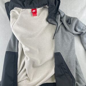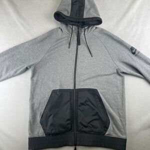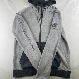 Nike International Hoodie Men L Gray Black Full Zip Fleece Thumbholes 802480-091