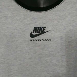 Nike International tank top - size Small. Light gray, black trim, side splits
