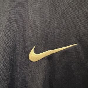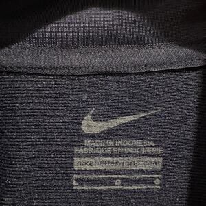 Full zip athletic track jacket with Invictus Games Orlando 2016 embroidery on front chest and Nike swoosh logo opposite. Large USA and American flag graphic on back. Fisher House Helping Military Families embroidered patch on sleeve. Contrast white panels at shoulders and arm seams. Two front pockets. Stand collar. Tag size Large.