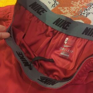 Elevate your Iowa State Cyclones fan apparel just in time for March madness. Featuring the iconic Nike swoosh and Cyclones team logo, these pants are perfect for game day or casual wear. Made with Dri-Fit technology, these pants wick away moisture to keep you cool and comfortable while showing off your team spirit. zip up pockets to keep all your valuables and cell phones safe. zip and tie legs to easily remove over basketball shoes or to tighten down when playing. whatever you need these pants have it all in light new condition matched with new graphic t-shirt.