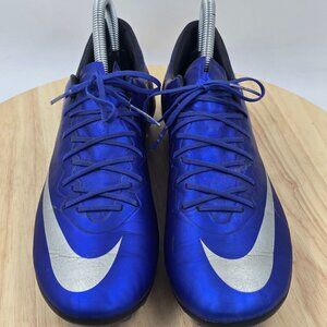 Nike JR Mercurial Vapor X FG CR7 Royal Blue Soccer Cleats 684841-404 Sz 6Y. In good pre-owned condition. Flaws- some scratches- dirt staining on outsides- some wear on cleats see pictures above.