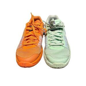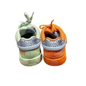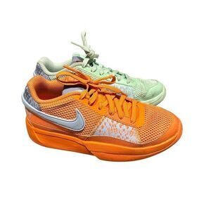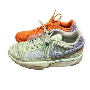 Keywords: Nike Ja 1, mismatched sneakers, multicolor, kids athletic shoes, vibrant colors, synthetic upper, low top, activewear, sports shoes, casual outings, pre-owned sneakers.