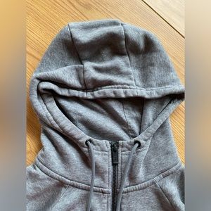 This jacket is super comfy and in great condition! The neck zips up to under the chin. Priced to sell as is.