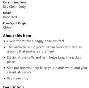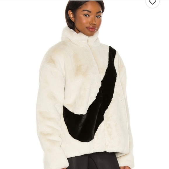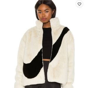 NWT Nike Sportswear Faux Fur Women's Full Zip Jacket in size small in the colors Fossil and Black. Jacket is SUPER soft and feel almost like real fur.