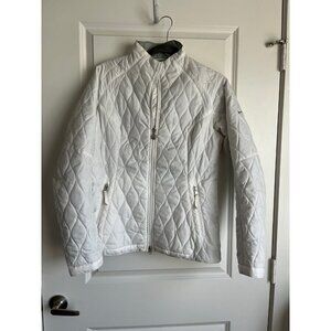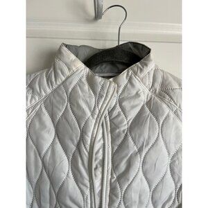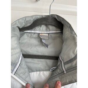 Women’s Nike jacket, size large (12-14). Lightweight, good condition but does have some stains as shown in photos. Don’t think I missed any but could be wrong. Lots of pockets both inside and outside.