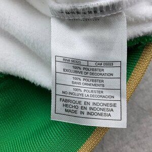 This Nike Lebron 23 track jacket in adult large, boasts a white, green, and gold colorblock pattern inspired by Lebron's St V Mary Irish basketball journey. Fashioned in 100% polyester for a comfortable fit.