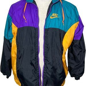 Nike Jacket Boys Large 14/16 Windbreaker Hoodie Color Block Zip Lined Hooded VTG