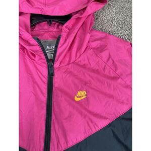 Nike Jacket Girls XL Black Pink Hooded Windbreaker Full Zip Colorblock 275604