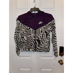 Nike Jacket Girls XL Purple Animal Print Full Zip Long Sleeve Hooded Pockets