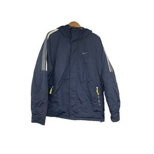 Nike Jacket Mens Large Nylon Winter Hooded Long Sleeve Full Zip Blue Vintage