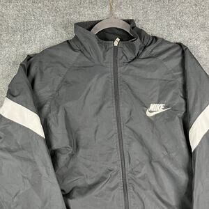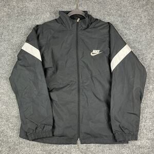 Nike Jacket Mens Size L Black Full Zip Reflective Stripe Windbreaker Logo Coat