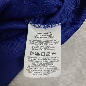 Elevate your activewear game with this Nike track jacket designed for men. The mid-length, blue jacket features a full zip closure and long sleeves, making it the perfect choice for fall and spring seasons. The jacket is made of a blended fabric of 100% polyester and is machine washable for easy care.