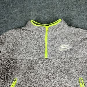 Nike Jacket Women’s L Deep Pile Shaggy Swoosh Fleece Sherpa Crop Pullover Neon