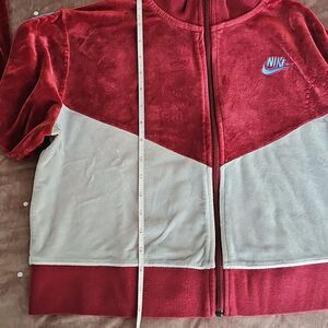 Nike Jacket Women's Large Sports Velour Color block Cropped Red Size L