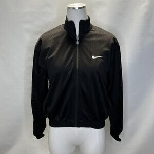 Nike Jacket womens Small Black Mesh Full Zip Swoosh Retro N Logo Track Vintage Style