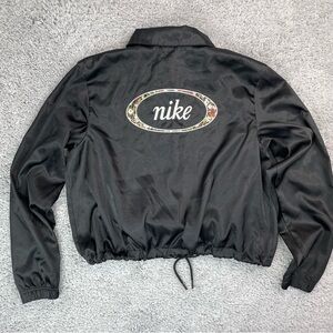 Nike Jacket Womens Small Satin Floral Button Up Jacket Athletic Embroidered Logo