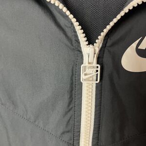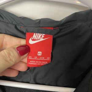 Nike Jacket Womens XS Black Hooded Full Zip Windbreaker Swoosh Logo Athletic