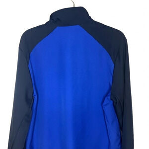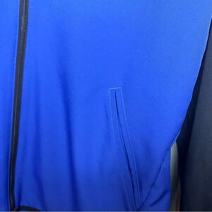 Nike jacket. Dry team training. Full zip up. Royal blue and navy blue. Thin soft polyester material. Perfect for a cool day. Excellent preowned condition.