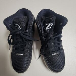 These Jordan sneakers feature a sleek black design with a high-top silhouette, perfect for both performance and casual wear