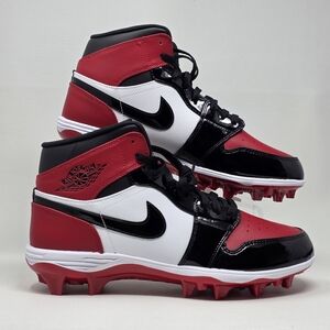 Nike Jordan 1 Men Size 11 Mid Football Cleats Patent Leather Bred FJ6805-601 New